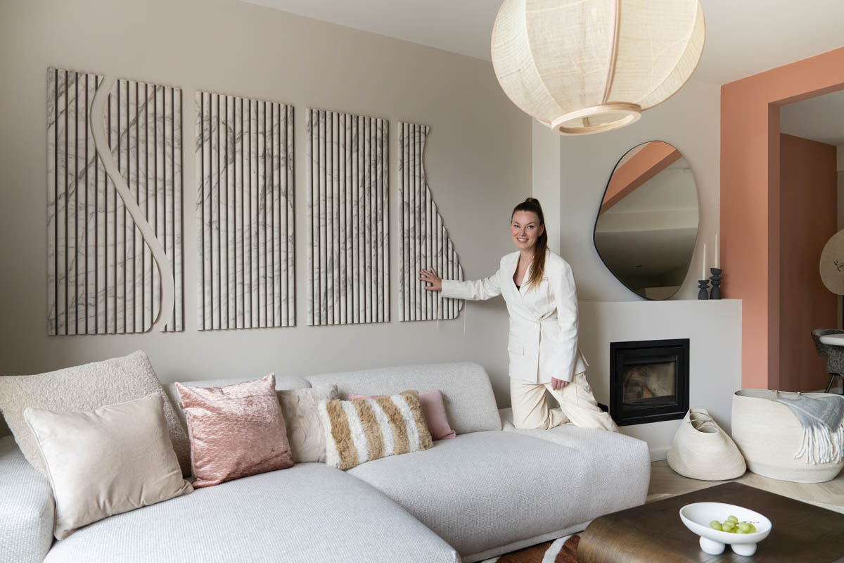 Wil je boven je bank iets hangen dat niet standaard is, wél stijlvol én meteen de akoestiek verbetert? In de make-over van Leonie maakte ik een groot marmerlook kunstwerk van akoestische wandpanelen — simpel, betaalbaar en verrassend chic. In deze DIY laat ik je stap voor stap zien hoe je van kant-en-klare wandpanelen een organisch kunstwerk maakt: van het ontwerp en zagen tot het afwerken en ophangen. Als je een zaag kunt vasthouden, kun je dit.